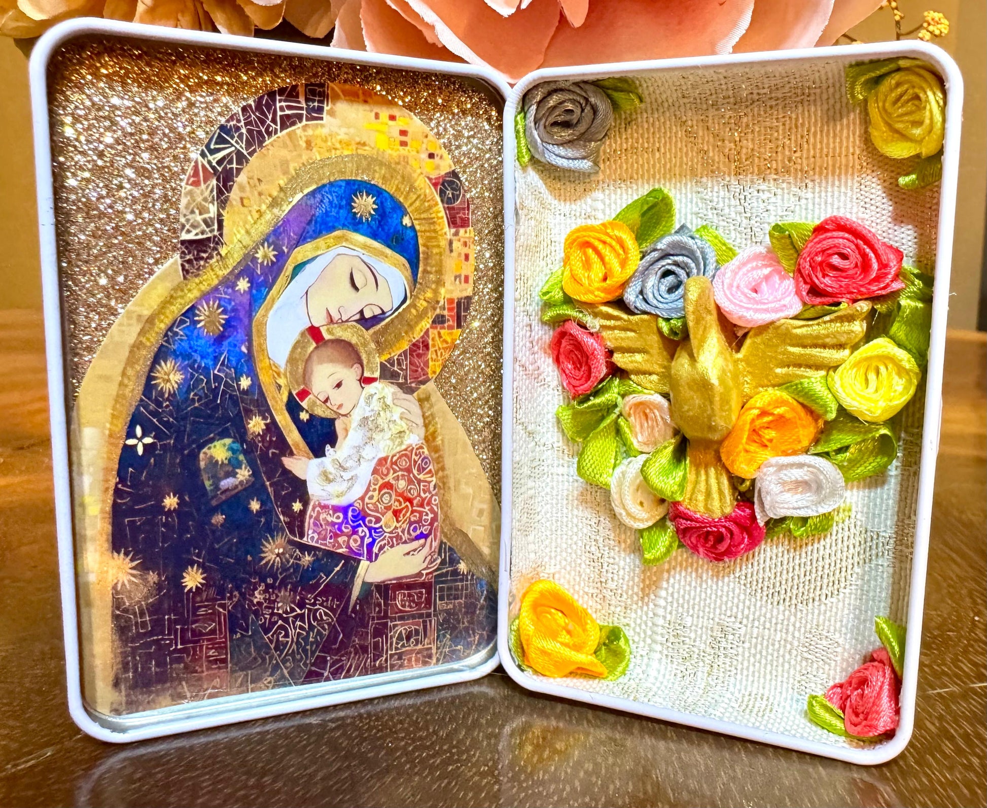 • Portable, Versatile, and Meaningful: Embrace the serenity and beauty of our Mini Shrine tin box – a small yet powerful token of faith and connection.